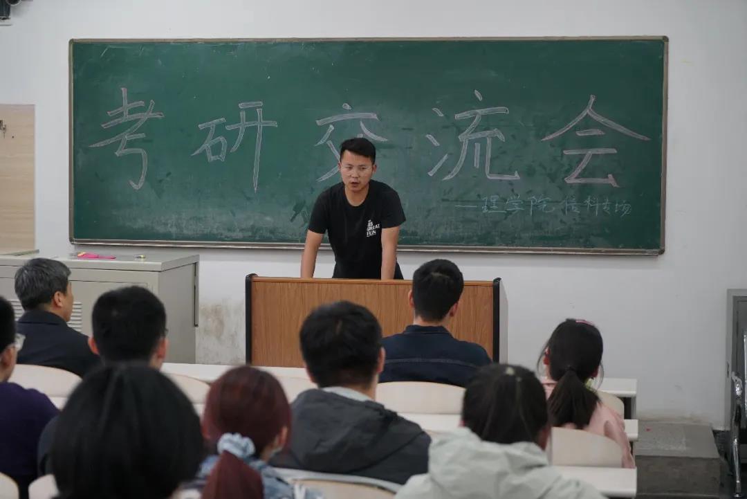 考取首都师范大学的殷硕、考取首都经济贸易大学的尚进以及考取本校研究生的岳世杰和张洪天等几位学长做了经验分享,他们分别从考研规划、信息调研准备工作、有关调剂方面的经验、考研过程中如何处理心理问题等多个角度讲述了个人的考研历程、经验。随后,同学们提出了许多考研复习过程中遇到的问题,学长们都给出了耐心细致的解答。