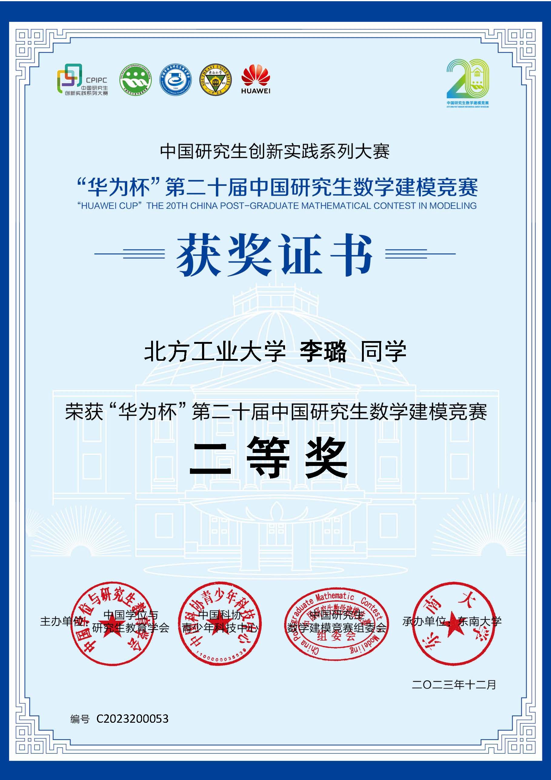 12月15日至12月17日,东南大学承办的“华为杯”第二十届中国研究生数学建模竞赛颁奖典礼暨二十周年庆祝大会在南京举行,公司研究生在比赛中成绩优异,共获得国家二等奖1项,国家三等奖5项。