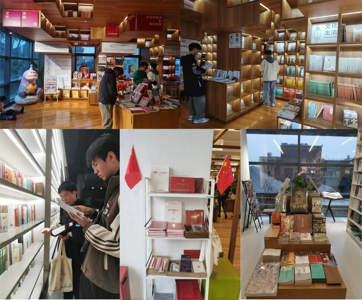 信23-3班赵鹏博表示,为宝书局和Page One北京坊书店巧妙地融合了传统与现代文化,展现了北京中轴线的独特魅力,让非遗保护与文化传承在阅读中得以延续。这次书店漫游活动让我深刻感受到,中轴线不仅是历史建筑的象征,更是连接过去与未来的桥梁。在这里,文化得以焕发新的生机,希望更多青年学子能走进这些书店,在书香中感悟中华文化的深厚底蕴与无限魅力。