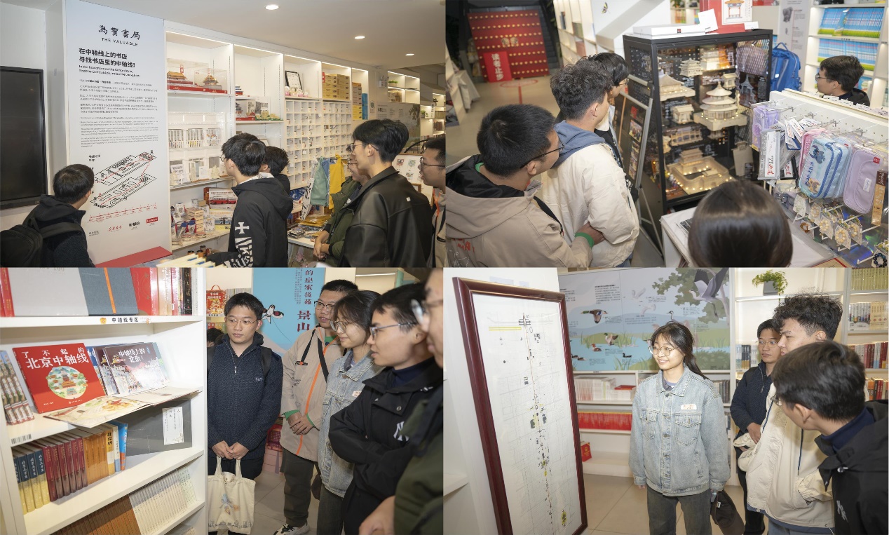 betway西汉姆联官网师生第一站来到新华书店·为宝书局,为宝书局坐落于北京市西城区地安门外大街,是北京中轴线遗产区范围内唯一一家挂牌文物经营的书店,有近百年历史,2023年4月初以“活的中轴线博物馆”亮相京城。店内布局与北京中轴线的空间序列一一对应,呈“两坛-大街-城门-广场-宫殿-山-市井”的结构。穿梭在书店里,就像是漫步在一座微缩城市中。