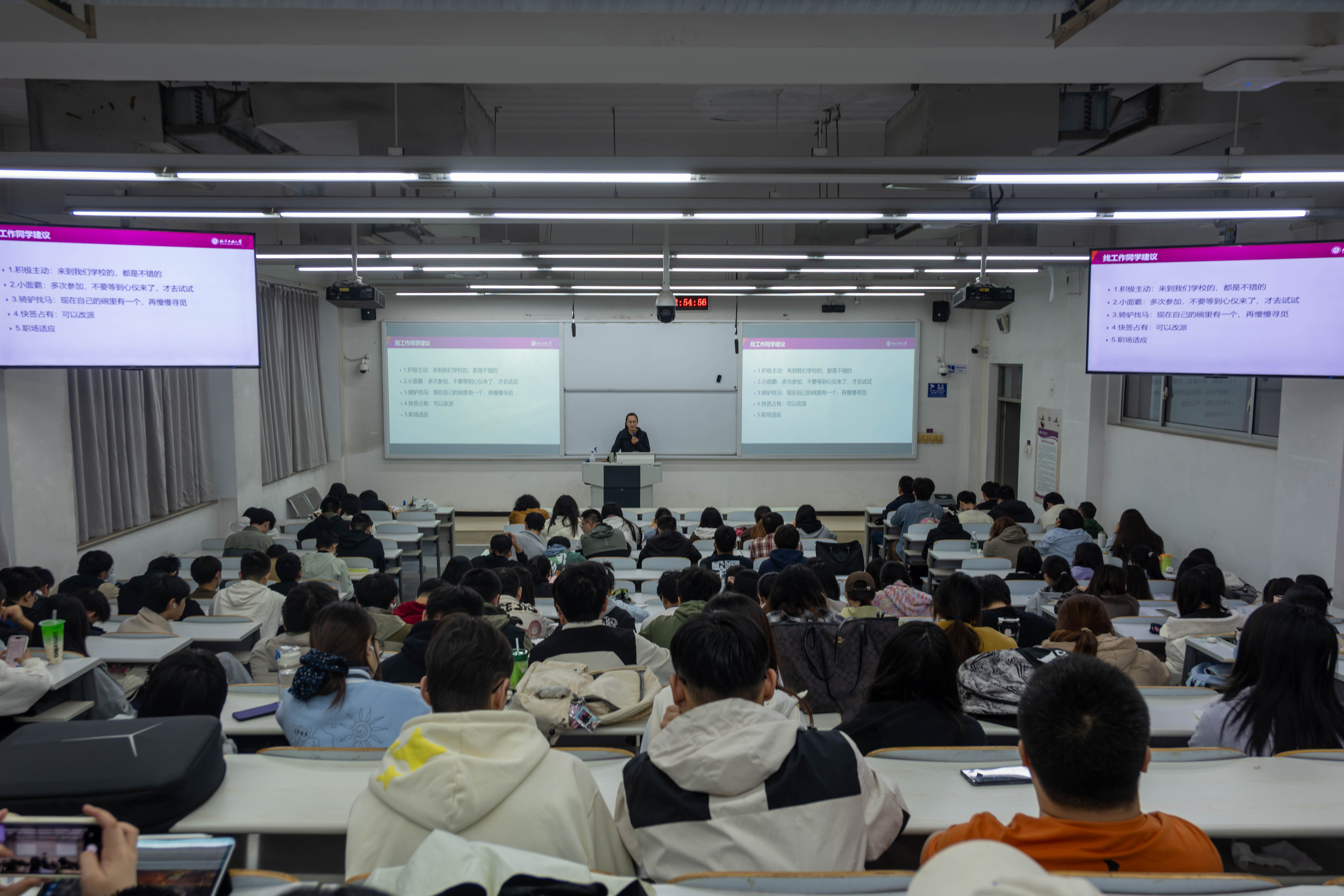 公司党委副书记贺映勇为毕业生详细讲解就业形势与政策,并提三点建议:一是筑牢安全防线。求职警惕不规范招聘,实习主动了解法规,维护合法权益。二是紧抓秋招窗口。提前研究企业要求,打磨简历、强专业能力,力争锁定理想岗位。三是做好多元预案。预设深造、求职变数,同步规划备选方案,以“多手准备”应对不确定性。