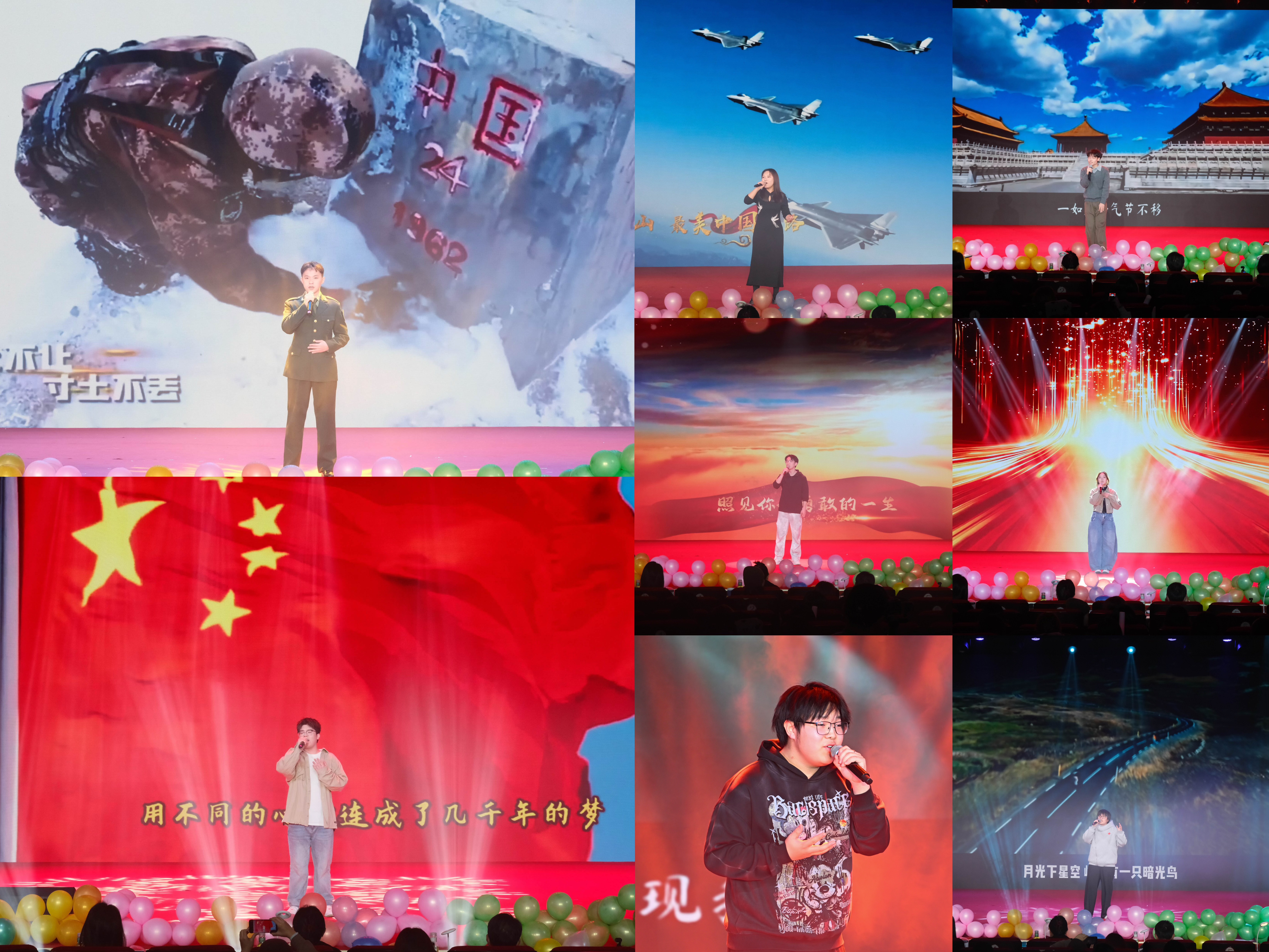 第一环节:八位选手依次登台演唱,用独特的嗓音和精湛的演绎展现各自的音乐实力。《请放心吧,祖国》的深情告白、《不忘初心》的坚定执着、《铭记》的深沉湎怀、《是龙》的豪迈激昂、《千山万水》的追梦情怀、《有我》的青春担当、《看得最远的地方》的美好憧憬以及《明日坐标》的奋进力量,每一段旋律都扣人心弦,每一句歌声都传递心声,充分展现了公司学子积极向上的精神风貌。