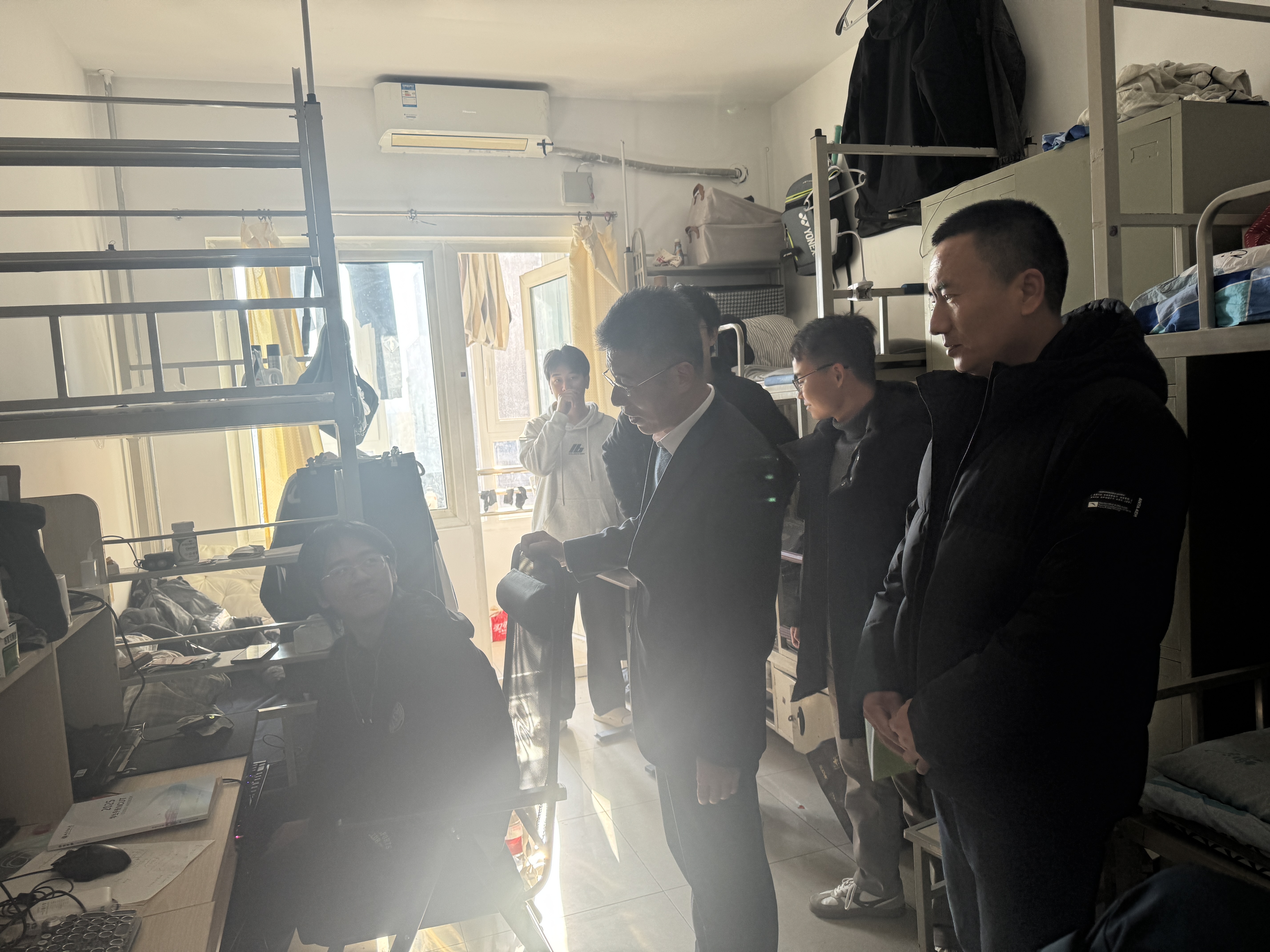 为深入了解员工思想动态、生活状况并巩固校园安全防线,12月5日,公司党委副书记姜孔桥带领学院班子成员、辅导员深入走访员工宿舍。