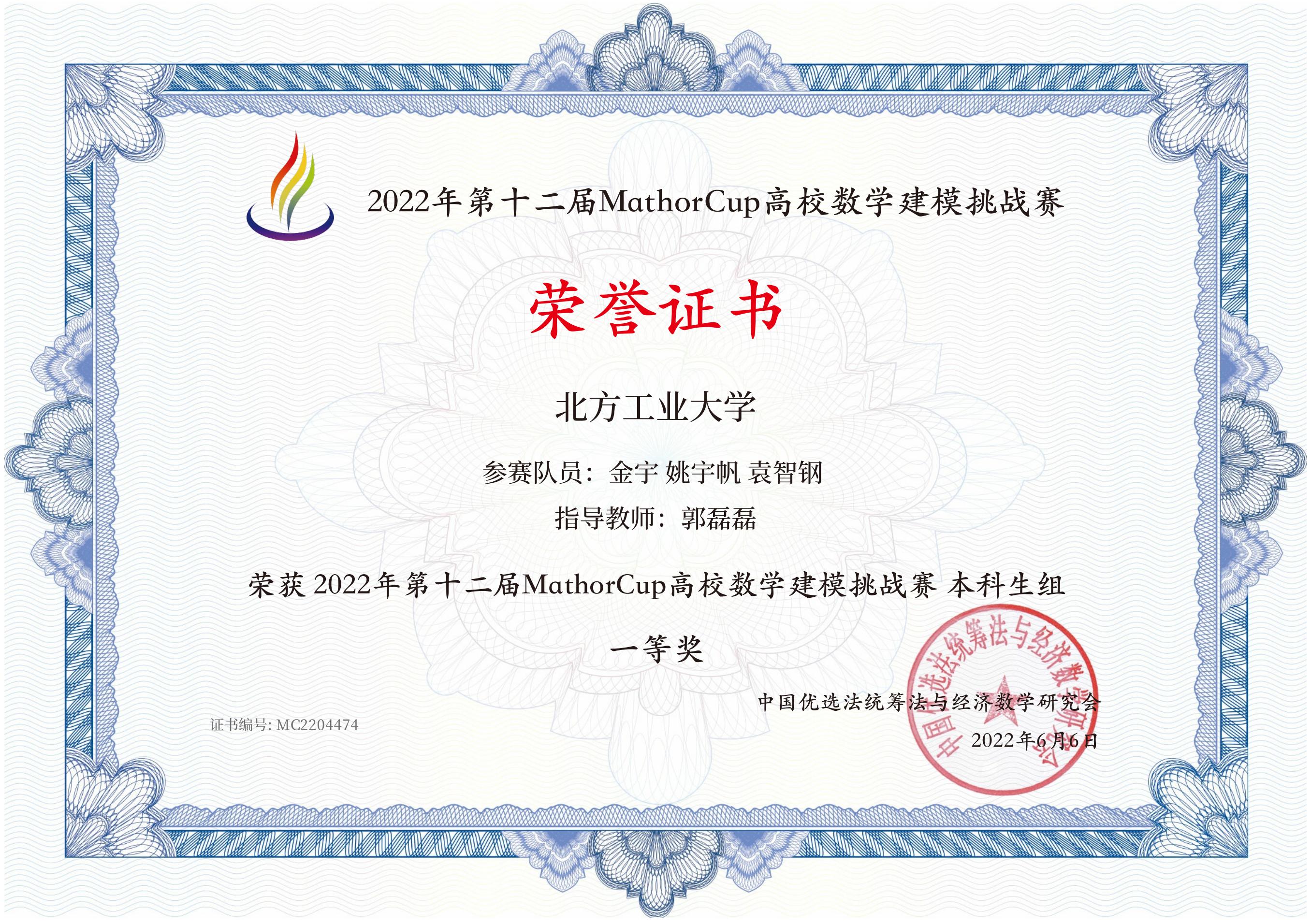 近日,2022年第十二届MathorCup高校数学建模挑战赛成绩揭晓。公司24个代表队参赛,共获得一等奖1项(3人),二等奖3项(9人),三等奖8项(24人)。公司被评为“优秀组织单位”,指导教师郭磊磊被评为“优秀指导教师”。