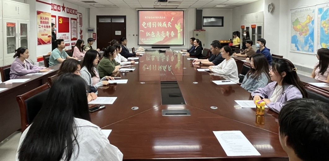 参观北大红楼前,统计本科党支部与统21、22级团支部团员代表在博远楼805会议室进行理论知识学习。统21-2班团支书张昕月进行了以“党团引领成长,红色点亮青春”为主题的微团课讲解,讲述了北大红楼见证革命先辈孕育建党的光辉历程,提前带领同学们学习了北大红楼的历史和红色精神,为开展后续活动打下扎实理论基础。