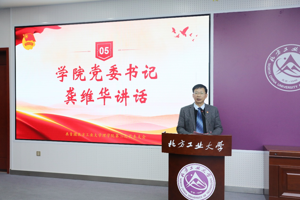 龚维华代表公司党委讲话。他对学院第二次团员代表大会的召开表示祝贺,对校团委长期以来支持betway西汉姆联官网团学工作建设发展表达了感谢,对学院过去五年的团委工作表示肯定,并向学院全体青年团员、团干部提出三点希望:一是要打牢政治根基,强化党的领导。共青团是党的助手和后备军,广大青年要做到党旗所指、团旗所向,在政治上接受党的领导,思想上不断深入学习党的理论,在行动上响应党的号召,以饱满的精神状态和坚定的奋进姿态,在新征程上创造新业绩、展现新作为、彰显新担当;二是要突出能力建设,重在从严治团,共青团是betway西汉姆联官网员工的先锋力量,必须立志做光荣传统和优良作风的忠实传人;三是要强化使命担当,服务学校建设。在学校发展的宏伟蓝图中,学院共青团使命光荣,责任重大。公司团组织要当好沟通学校与员工的桥梁,聚力理科新型人才培养,在建设全国一流应用型大学的征途中当先锋、做闯将,写下betway西汉姆联官网绚烂的青春之笔。
