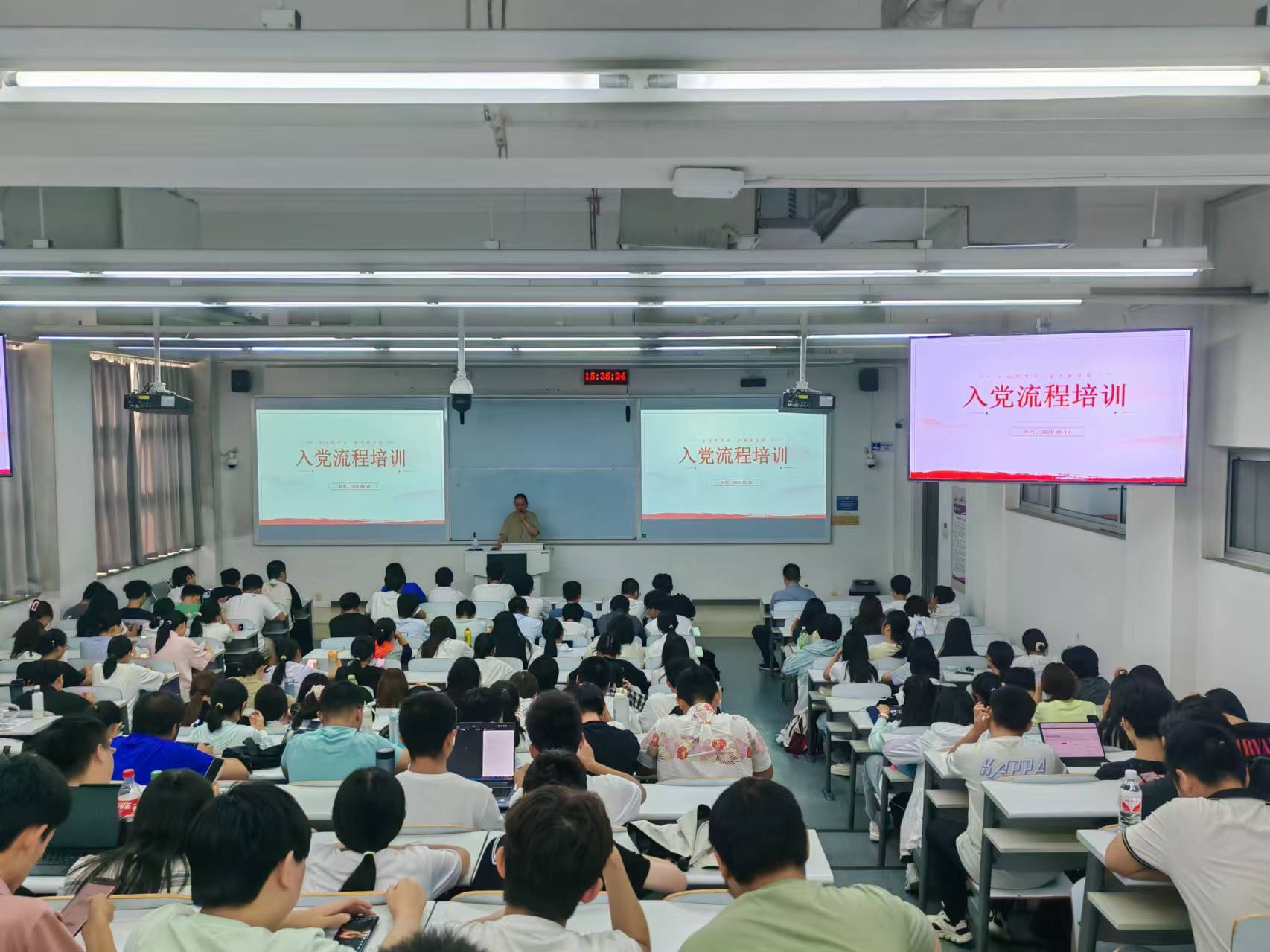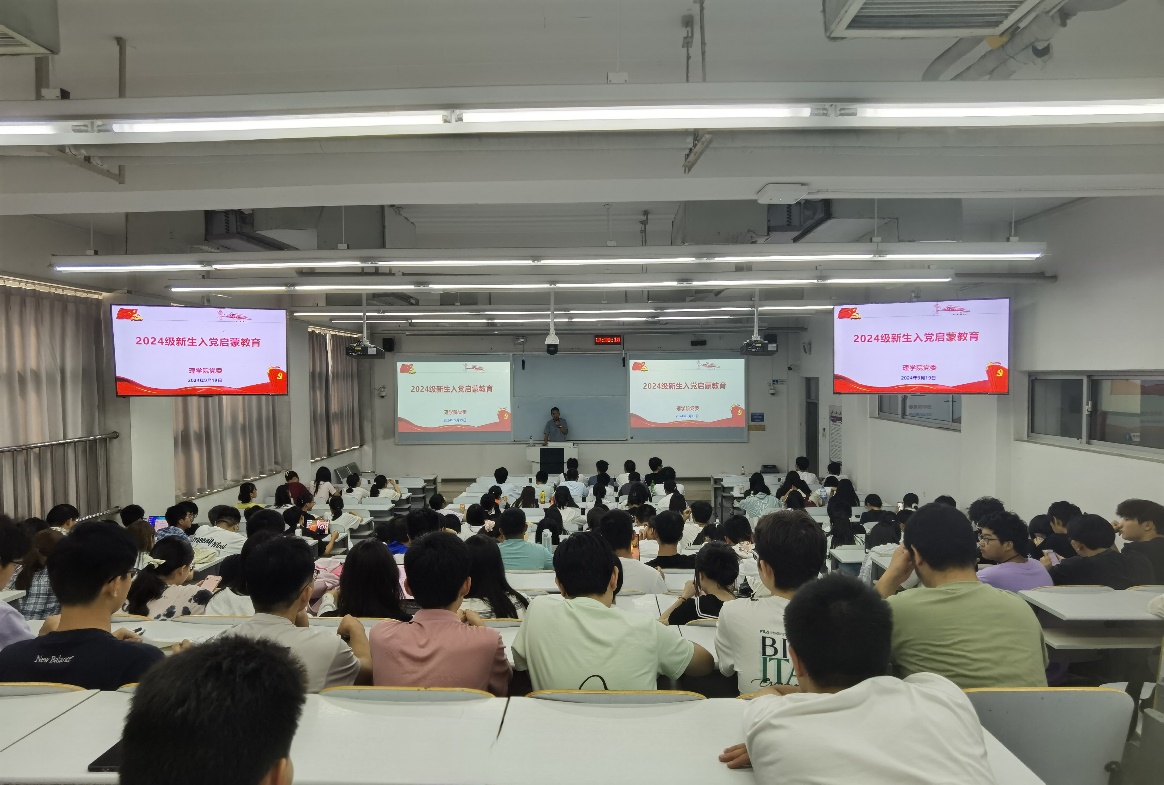 9月19日下午,公司党委在瀚学楼0208开展2024级新生入党启蒙教育。党支部书记代表、新生辅导员、党务秘书和全体2024级新生参加了教育活动。