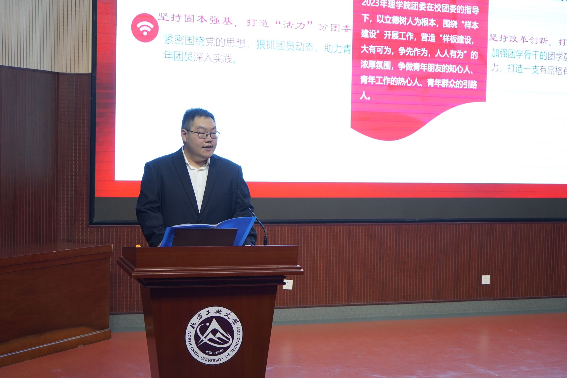 公司团委第二十届员工会主席王然对2023-2024学年的员工会工作进行总结,他希望新任员工会骨干们能继续秉持员工之会、惠致员工的理念,助力理院团学蓬勃发展。学院团委第二十届团委副书记刘东润总结了上一学年团委的工作,他号召全体团学骨干积极营造“样板建设,大有可为,争先作为,人人有为”的浓厚氛围,为同学们提供更好的帮助和服务。
